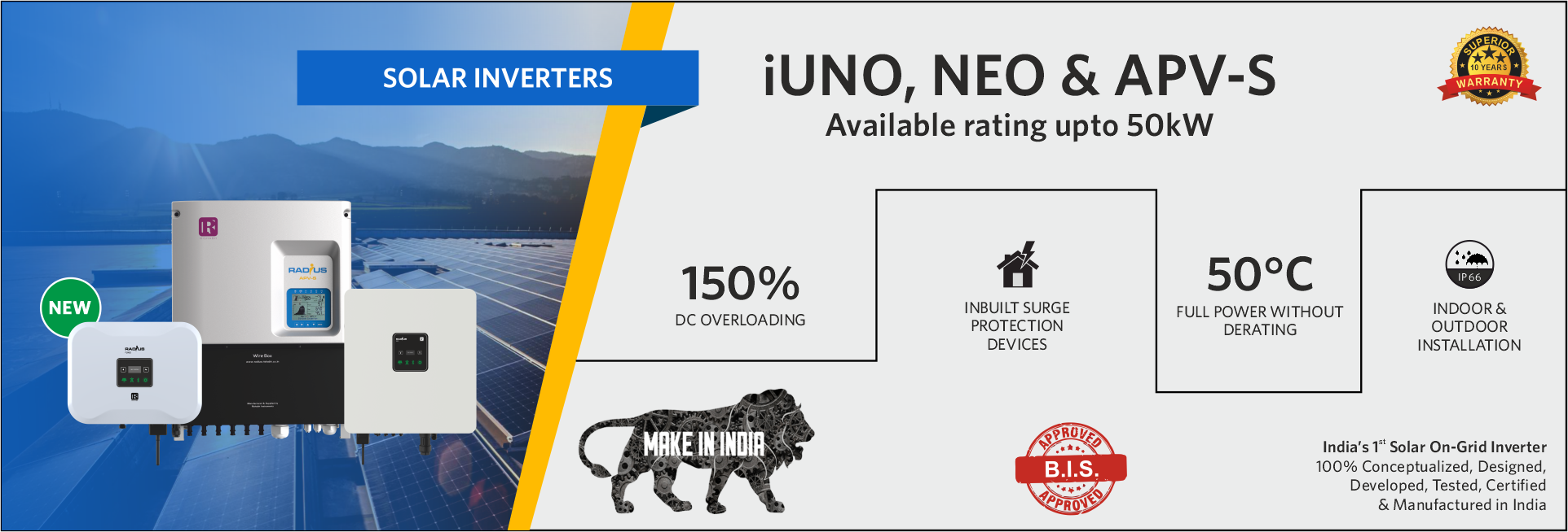 Radius Solar Inverters, a flagship brand of Rishabh Instruments Ltd., is India’s leading solar inverter manufacturer and the first to design, develop, and produce solar string inverters entirely in-house. Leveraging advanced technology acquired from GEFRAN S.p.A., Italy, and our state-of-the-art manufacturing expertise, we deliver high-efficiency inverters that optimize energy harvesting, enhance system longevity, and enable remote monitoring. Serving residential, commercial, and industrial applications, our innovation-driven solutions empower the global transition to clean energy, making Radius a trusted partner in building a greener, sustainable future for India and beyond.